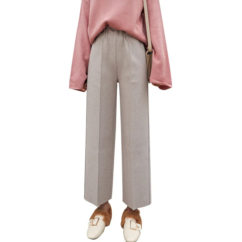 Thick Autumn Winter Pants Women Woolen Wide Leg Pants Black Grey Loose Ankle Length Pants High Waist Leisure Trousers Casual : Click Here